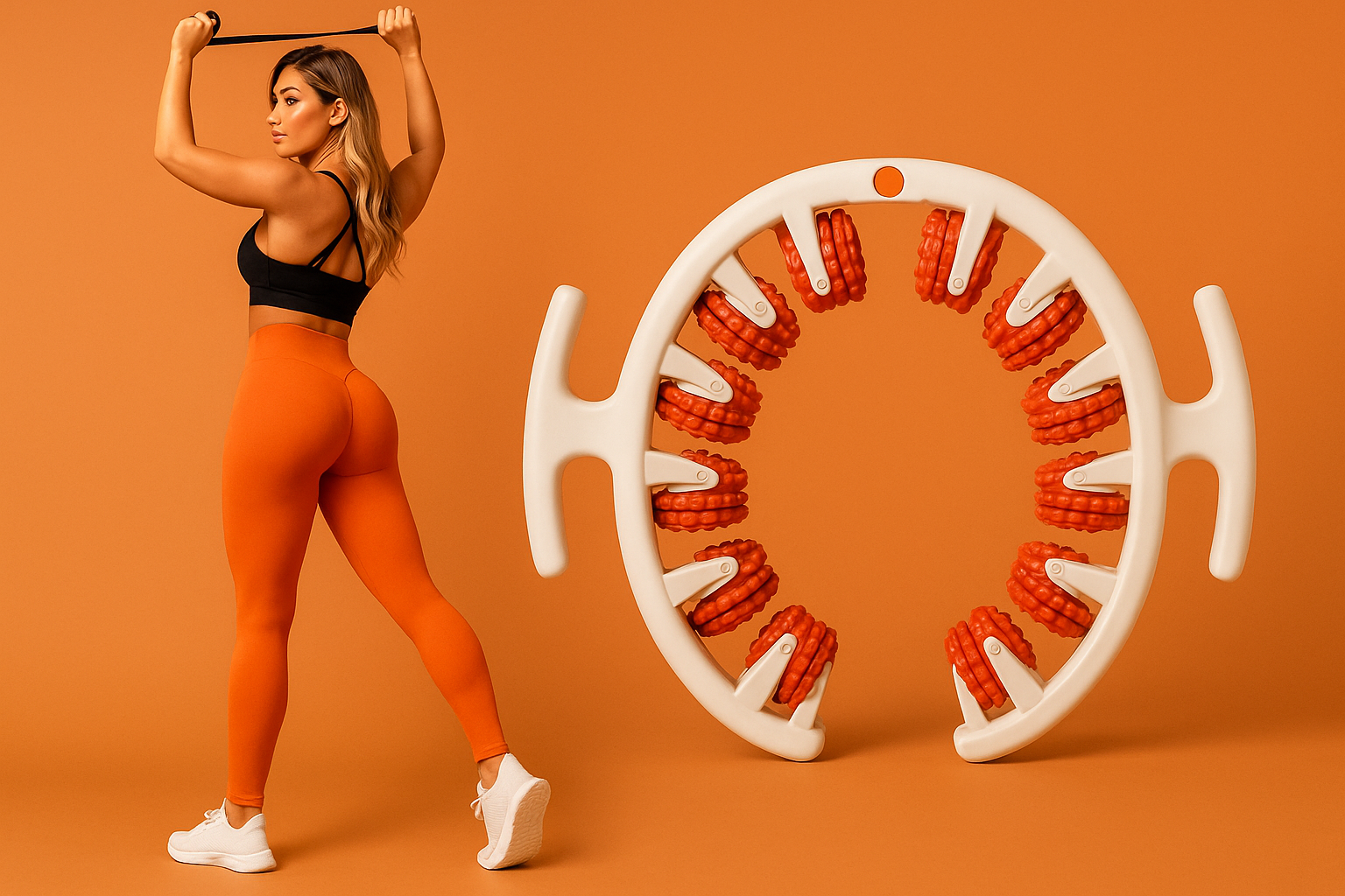 Outer diameter about 19–22 cm, inner 9–12 cm, weight 0.35–0.6 kg (easy to hold and travel with). Materials: ABS/PP body, TPE massage knobs.